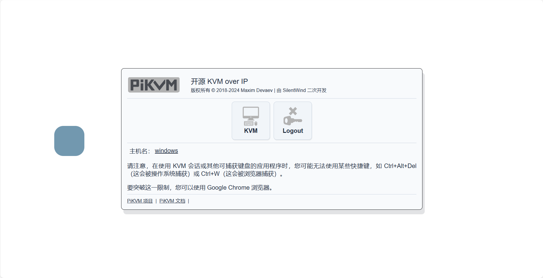 如果有替换 Logo 或其他图标的需要可以替换 /usr/share/kvmd/web/share/(对于源代码路径是 /web/share/ )目录下的文件,如此目录下 svg/logo.svg 是应用 Logo。