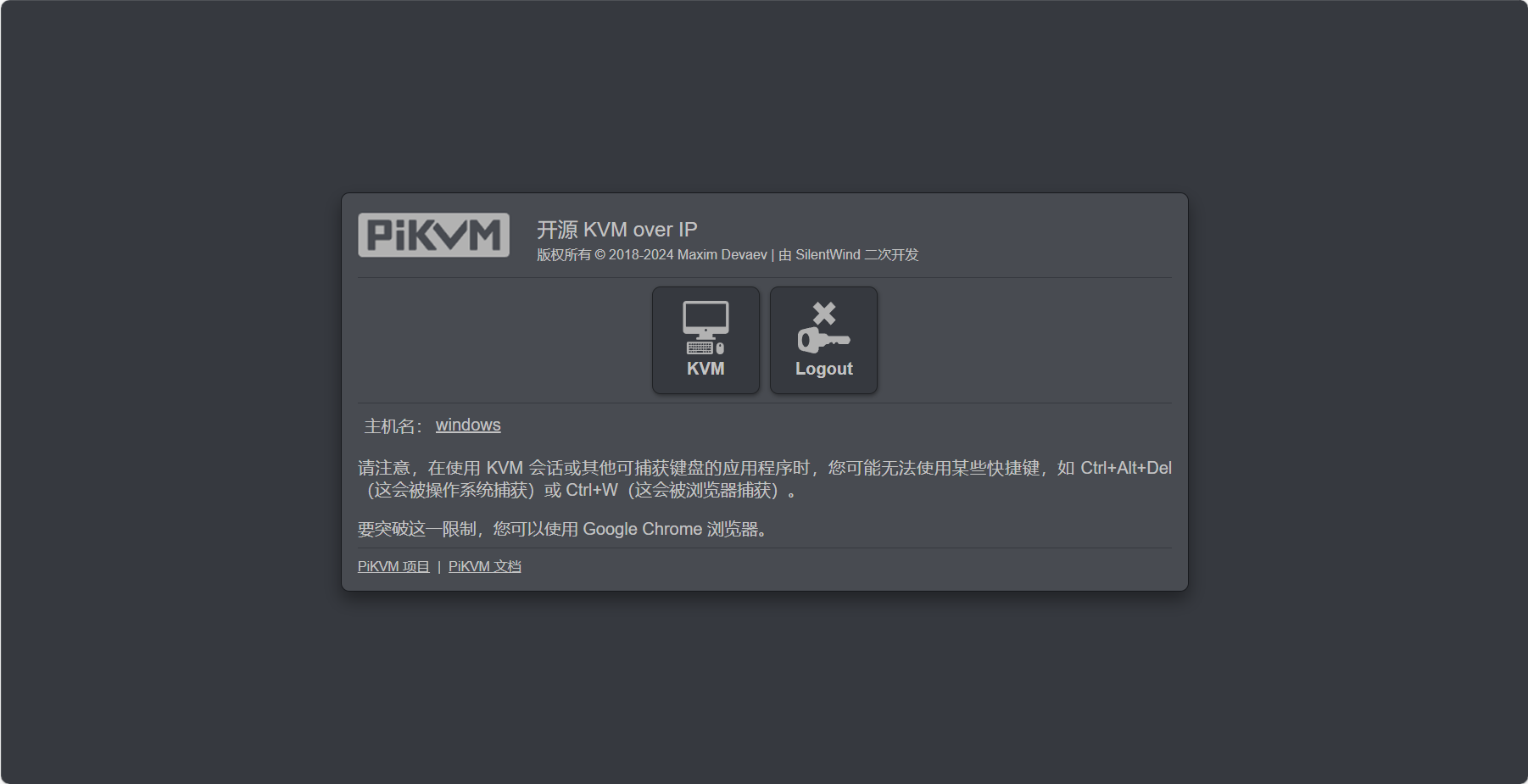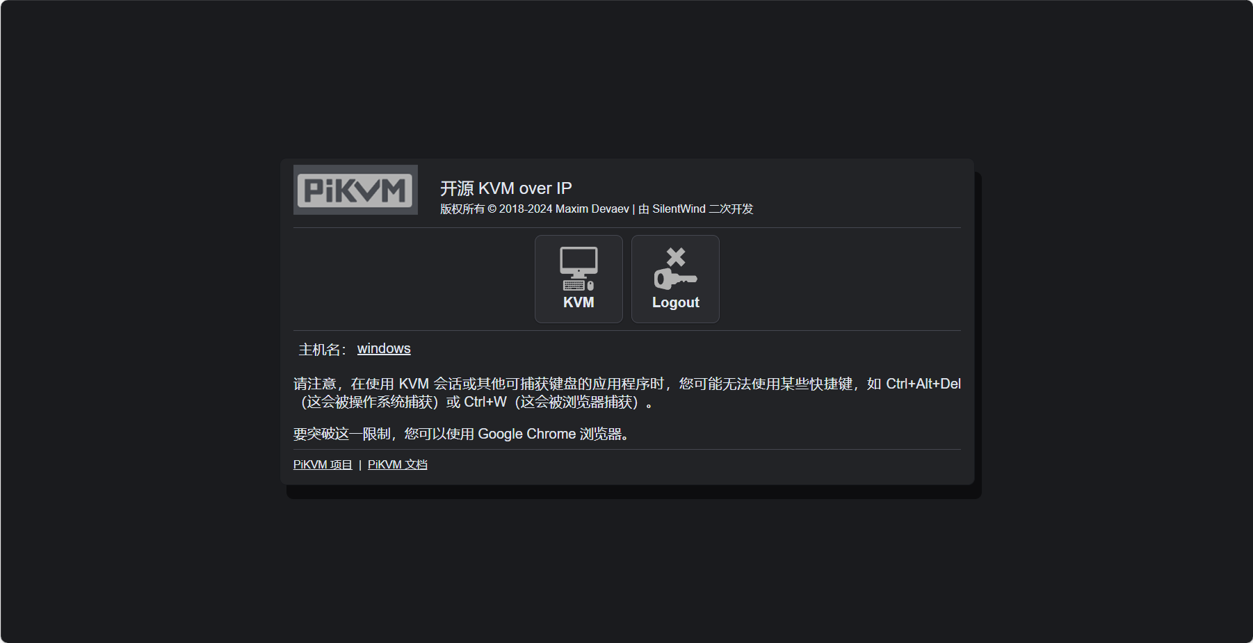如果有定制网页界面主题的需要,可以编辑 /usr/share/kvmd/web/share/css/user.css 修改网页放入 CSS 颜色主题来实现想要的配色。